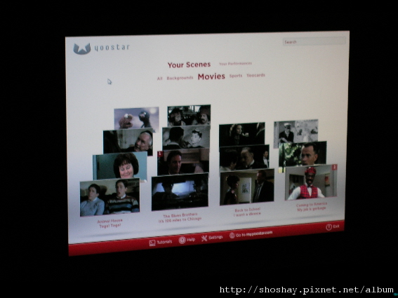 猜猜看Yoostar是什麼?應該不難聯想,命名類似Youtube,是一套可以讓人把自己放進電影某段情節裡的系統,硬體包括一台接電腦的小型錄影機和一大塊綠色背景螢幕,很像室內攝影工作室用的套用佈景。